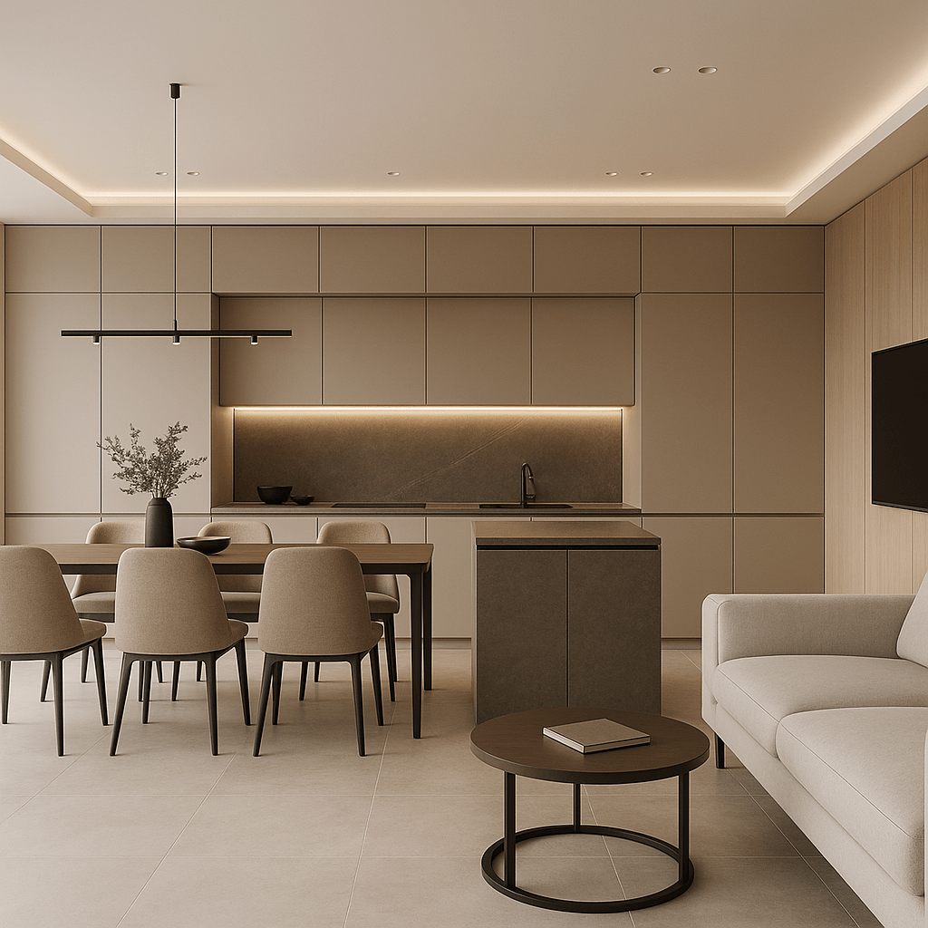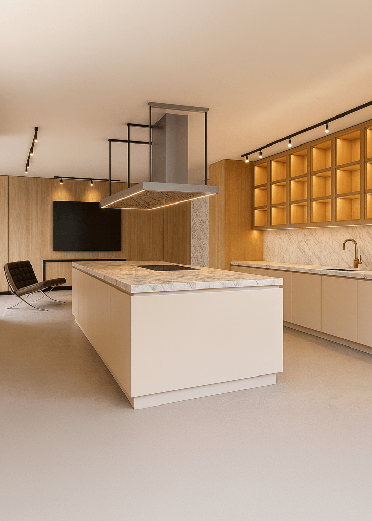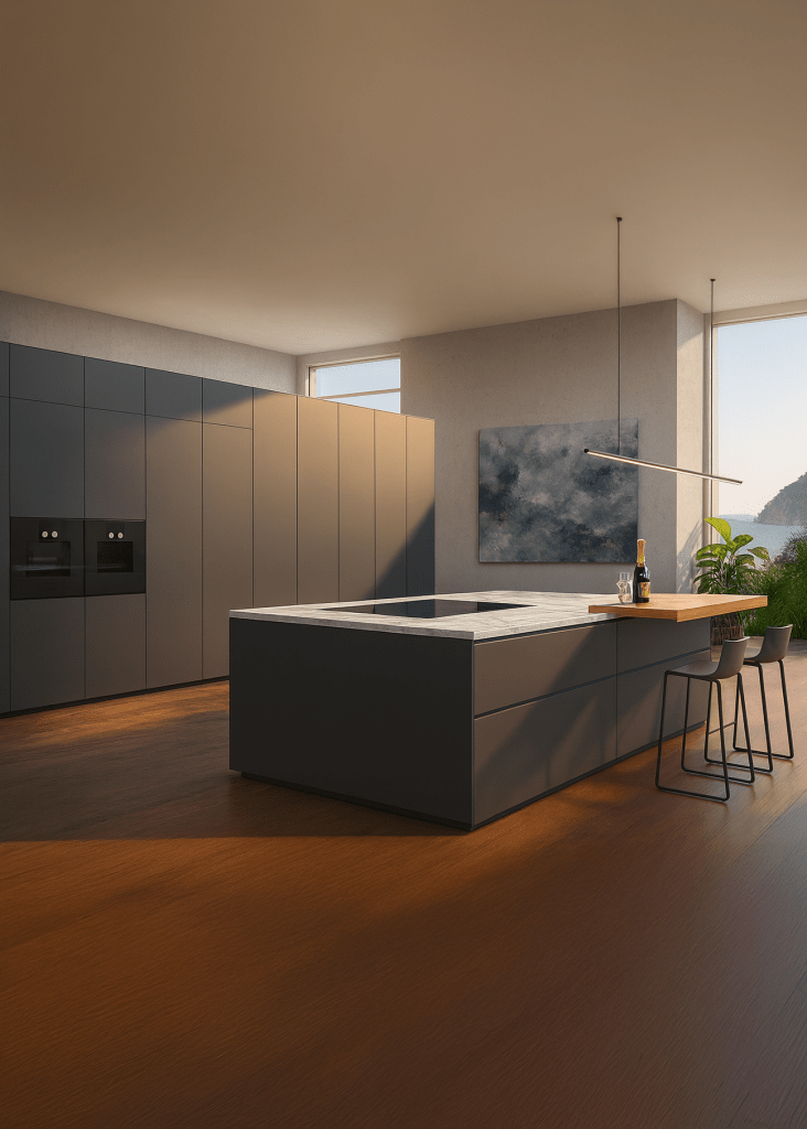 Proyecto integral de cocina y vestidor diseñado desde cero para adaptarse al estilo de vida del cliente. La organización del espacio, la iluminación y la materialidad se resuelven con precisión, priorizando funcionalidad, orden y calidad a largo plazo. Un resultado controlado y coherente que cumple plenamente con los objetivos del proyecto.